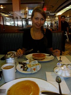Dann gings todmüde ins Bett. Diesmal habe ich viel besser geschlafen, als die letzte Nacht in NY. Am nächsten Morgen sind wir dann in ein Diner 🙂 Es war so, wie man es sich vorstellt. Unfreundliches, gestresstes Personal und absolut schrecklicher Kaffee. Ich habe das erste mal Pancakes gegessen. Danach war ich sooooooooo voll… ich konnte noch nichtmal meinen Bauch einziehen, auch wenn ich es gewollt hätte… 😉